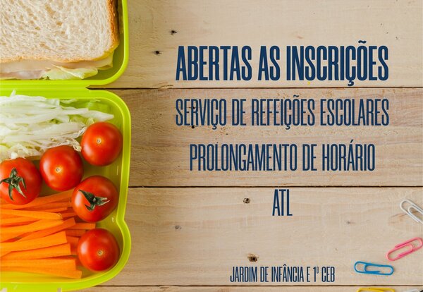 19 AbrInscrições para serviço de Refeições Escolares, Prolongamento de Horário e ...