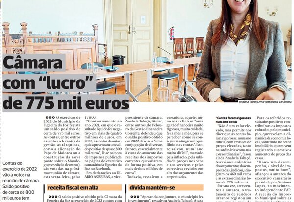 19 AbrO exercício de 2022 do Município da Figueira da Foz regista um saldo ...