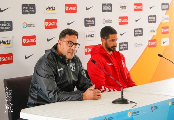 Capitães (Bruno Torres e Duarte Vigo) e Treinadores (António Torres e Edim Milhazes) das equipas que disputam o grande derby- ... -