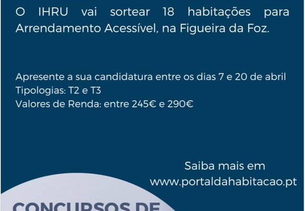 09 AbrIHRU vai sortear 18 habitações para arrendamento acessível na Figueira da Foz