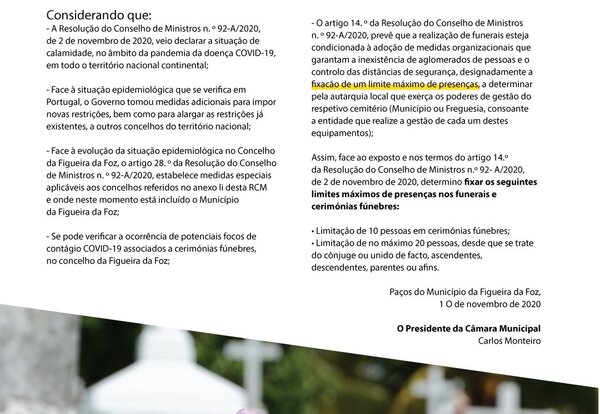 O Município da Figueira da Foz informa que, de acordo com o artigo 14º da Resolução do Conselho de Ministros nº 92-A/2020, que ...Covid-19 -