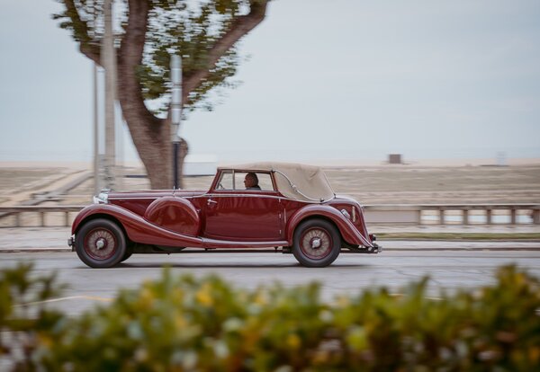 O pelotão de mais de três dezenas de automóveis e motos pré-guerra (produzidos até 1939) participantes na “Corrida dos ... -
