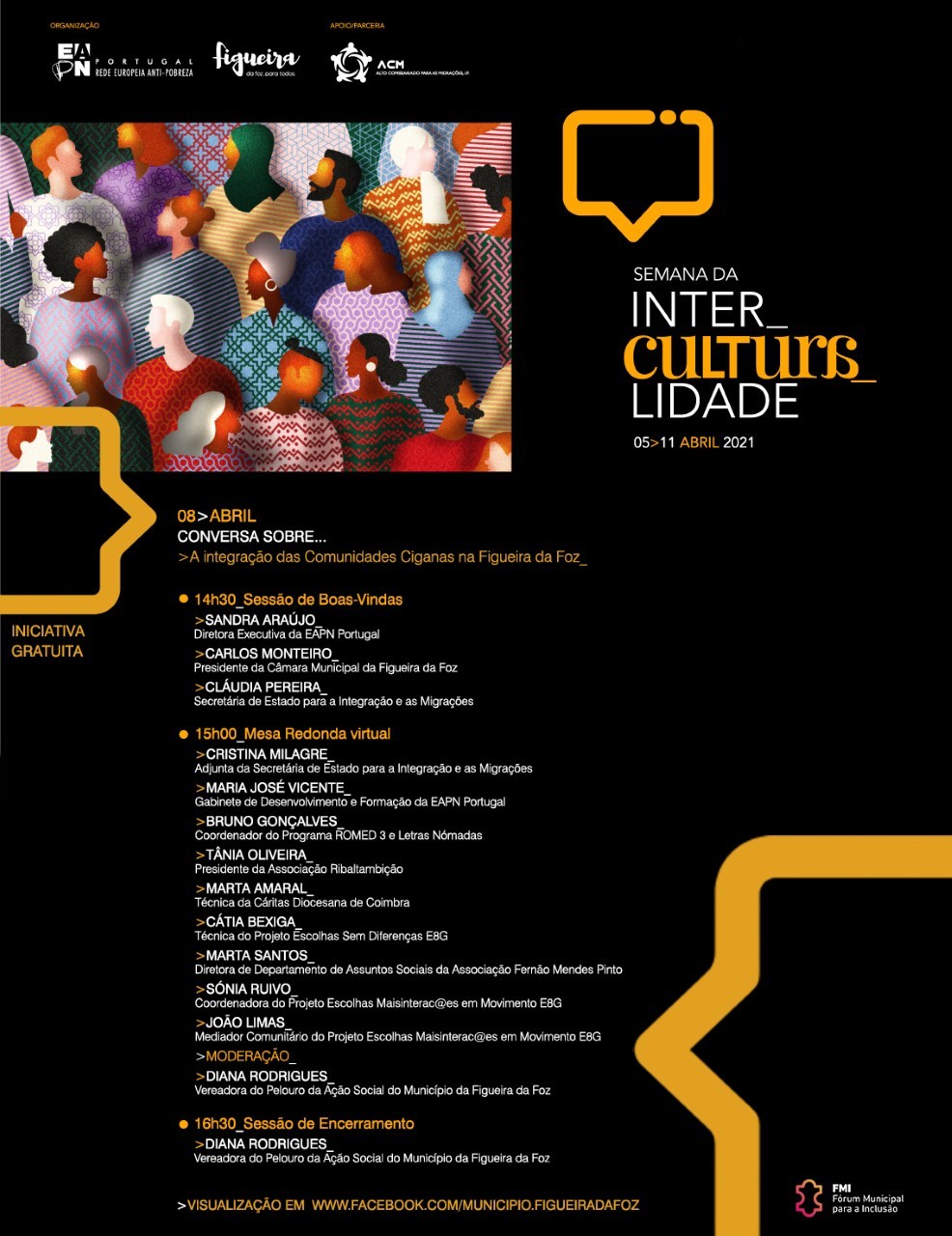 Assim, no sentido de sensibilizar os cidadãos para a necessidade de uma sociedade intercultural que tenha presente os valores da solidariedade; da não discriminação pela aparência, etnia, género ou nacionalidade; da igualdade; do respeito pela diferença e pela diversidade; da partilha, o Município da Figueira da Foz encontra-se a promover, no âmbito da Semana da Interculturalidade, em parceria com o Núcleo Distrital de Coimbra da EAPN Portugal e com o apoio e a parceria do ACM – Alto Comissariado para as Migrações, o “Ciclo de Conversas Figueira da Interculturalidade”.