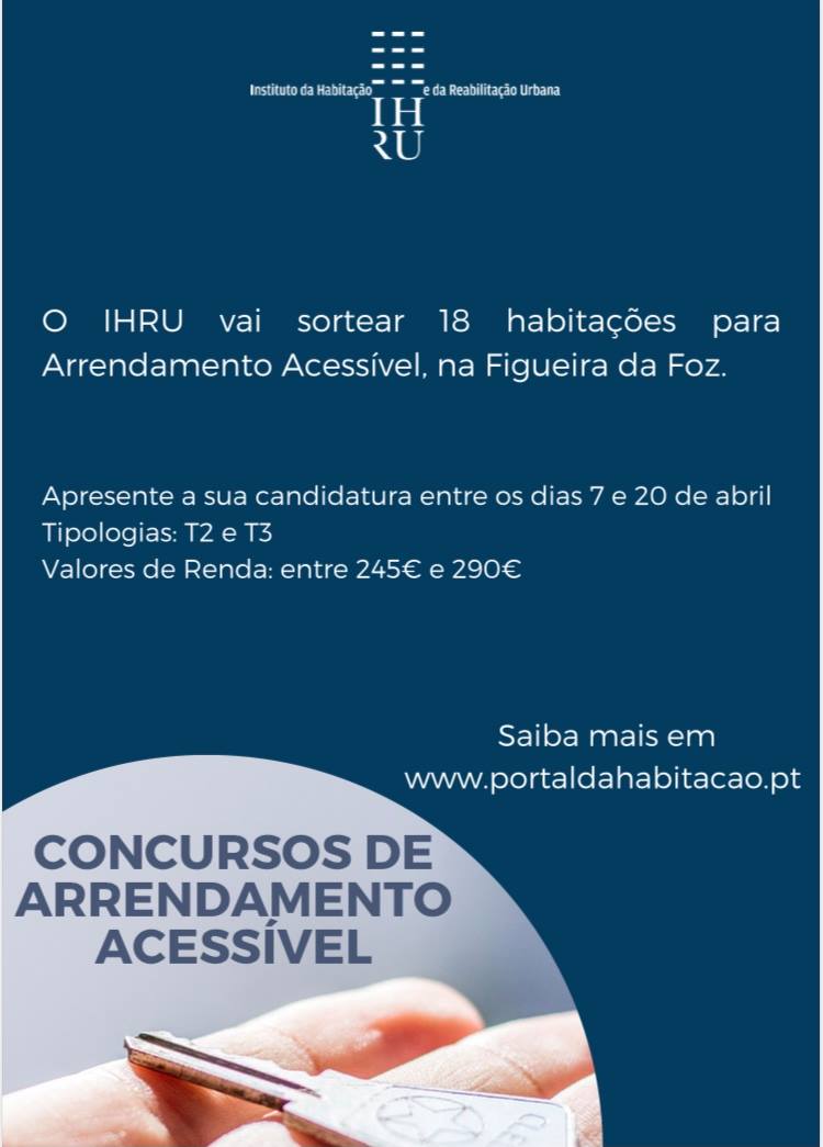 Face à necessidade de garantir o acesso à habitação às famílias que não têm resposta por via do mercado, o Instituto da Habitação e da Reabilitação Urbana (IHRU) vai sortear 18 habitações para arrendamento acessível, na Figueira da Foz.