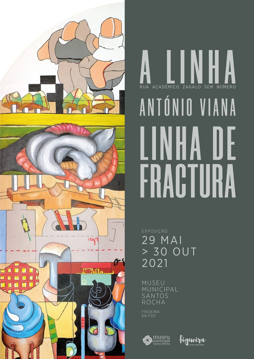 A encerrar a 9.ª edição do ciclo de programação cultural «Maio é Museu!», uma iniciativa que é uma referência na programação do Museu Municipal Santos Rocha (MMSR), realiza-se no próximo sábado, dia 29 de maio, pelas 17h00, no MMSR a inauguração de duas novas exposições temporárias “A Linha - Rua Académico Zagalo Sem Número” e “Linha de Fratura”, da autoria de António Viana.