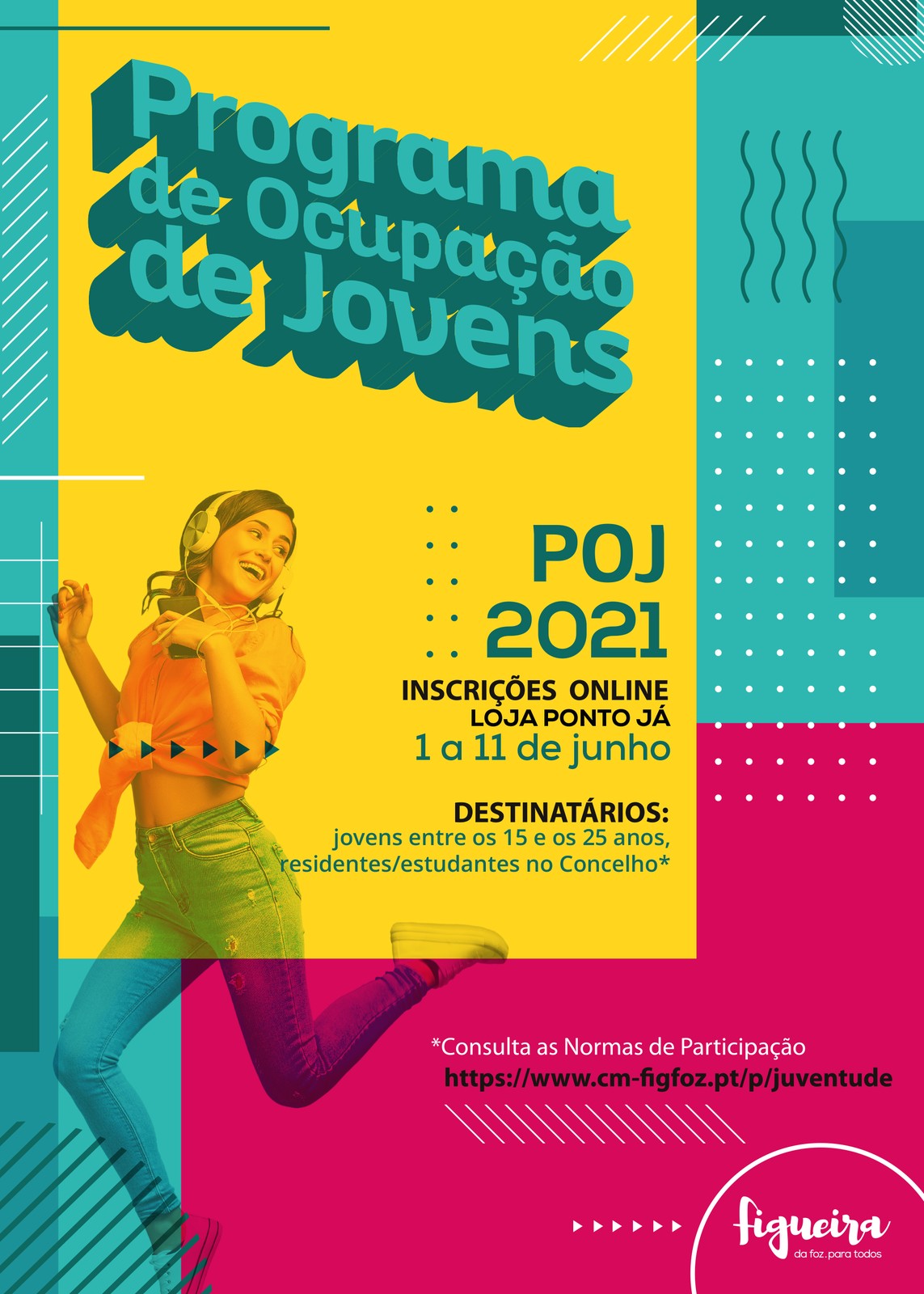 O Município da Figueira da Foz irá promover nos meses de julho e agosto, o Programa de Ocupação de Jovens - POJ, que visa a ocupação saudável dos jovens com idades compreendidas entre os 15 e os 25 anos, nos seus tempos livres, proporcionando: experiências de enriquecimento curricular, através do contacto com a realidade laboral; o desenvolvimento pessoal e social, através da aquisição de competências de responsabilidade, cidadania e solidariedade; a criação do espírito comunitário dos jovens, envolvendo-os em projetos e eventos ao serviço da comunidade; o apoio e implementação de projetos e eventos desenvolvidos pelo Município, através do recurso ao potencial criativo e ao dinamismo dos jovens.