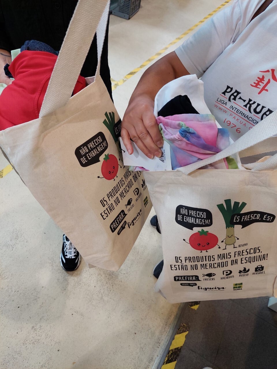 Para além dos benefícios da reutilização, a ação aludiu igualmente à frescura dos produtos e à confiança e proximidade dos mercados tradicionais.