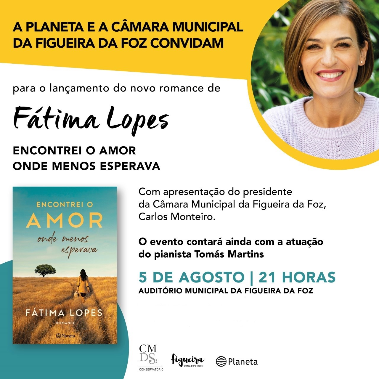 O Auditório Municipal da Figueira da Foz recebe, dia 05 de agosto, pelas 21h00, a sessão de apresentação do oitavo livro de Fátima Lopes, o romance «Encontrei o Amor onde menos esperava».