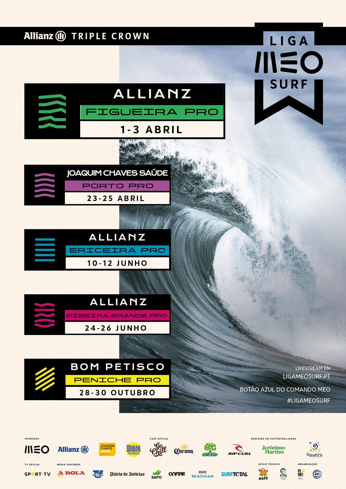 Está tudo a postos para o arranque do Allianz Figueira Pro, a etapa inaugural da Liga Meo Surf, a principal prova de surf em Portugal e a que define os títulos de campeões nacionais da modalidade, com a chamada marcada para as 7h30 do dia 01 de abril. A sequência de prova determina que a ação vai iniciar-se com os trials masculinos, seguindo-se a ronda 1 masculina.