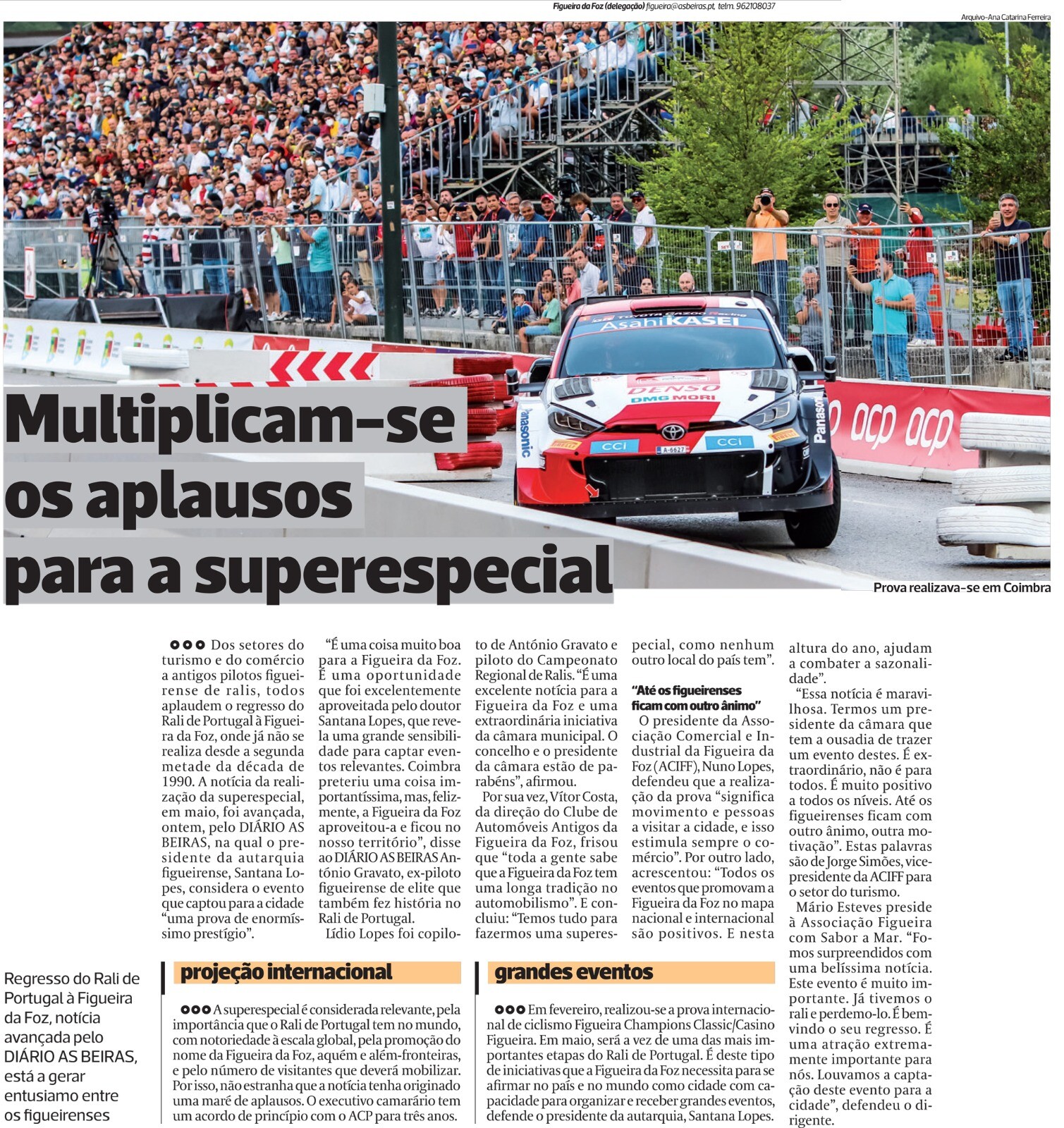 Na notícia hoje avançada pelo diário «As Beiras», o consenso em torno da realização da «Superespecial do Rali de Portugal», na Figueira da Foz, é transversal a vários setores: desde o presidente da Associação Comercial e Industrial da Figueira da Foz (ACIFF)- Nuno Lopes; ao vice-presidente, para o setor do Turismo, da ACIFF- Jorge Simões; a Mário Esteves, presidente da Associação Figueira com Sabor a Mar, entre outros nomes, a unanimidade perante "uma prova de enormíssimo prestígio", como referiu Pedro Santana Lopes, está bem patente nas declarações proferidas.
