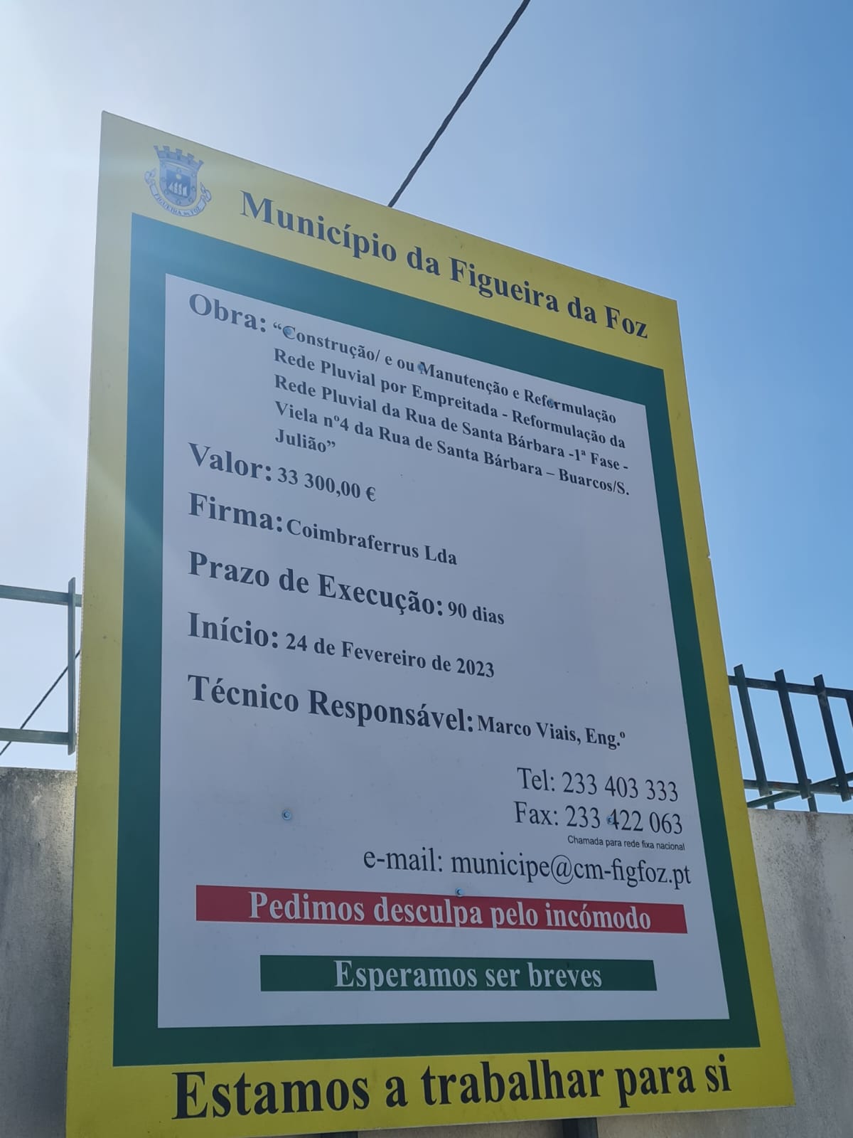 A empreitada em causa, adjudicada à empresa Coimbraferrus Lda pelo valor de 33 3000,00€, decorre a bom ritmo, com um prazo de execução de 90 dias. Recorde-se que estes trabalhos se iniciaram a 24 de fevereiro.