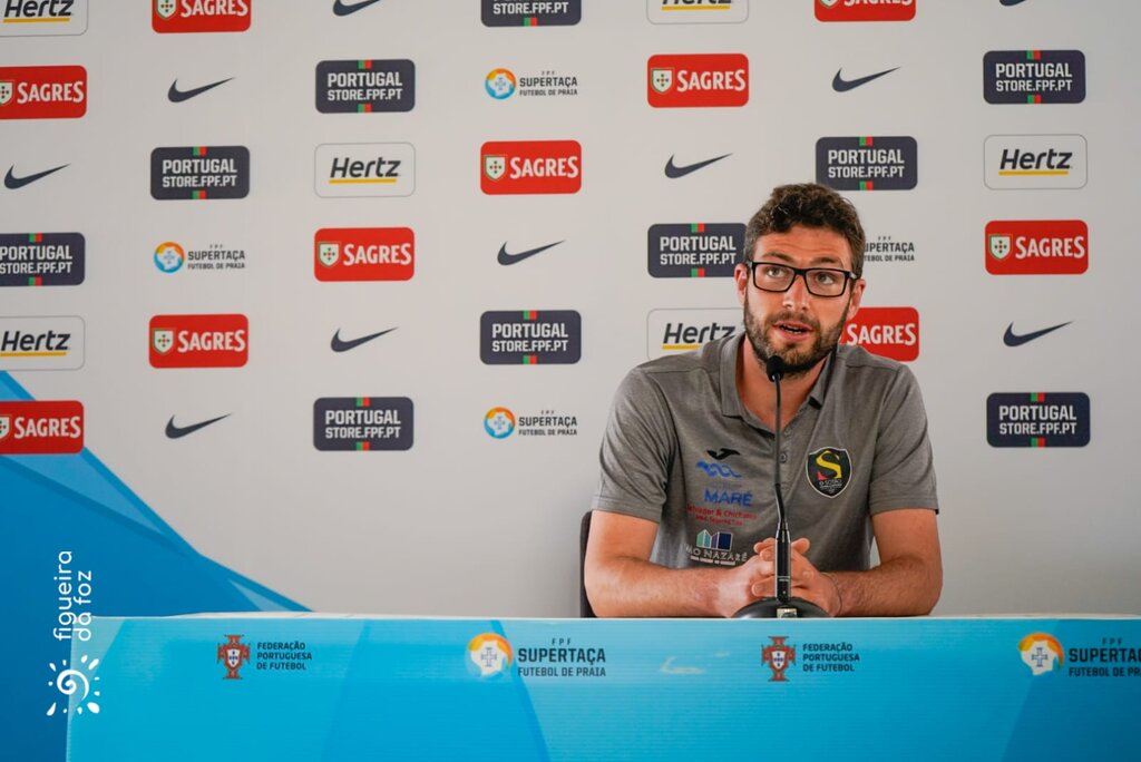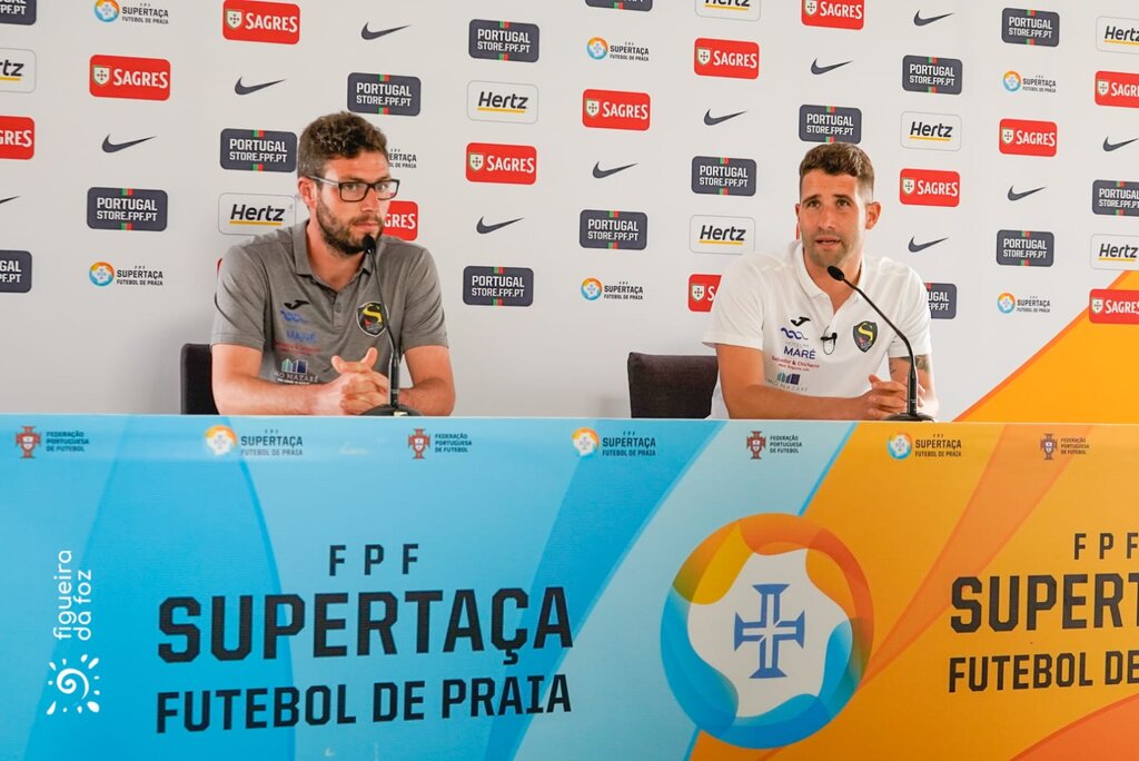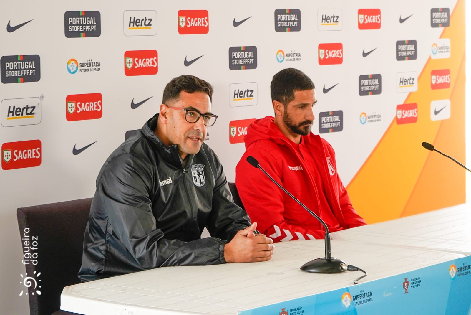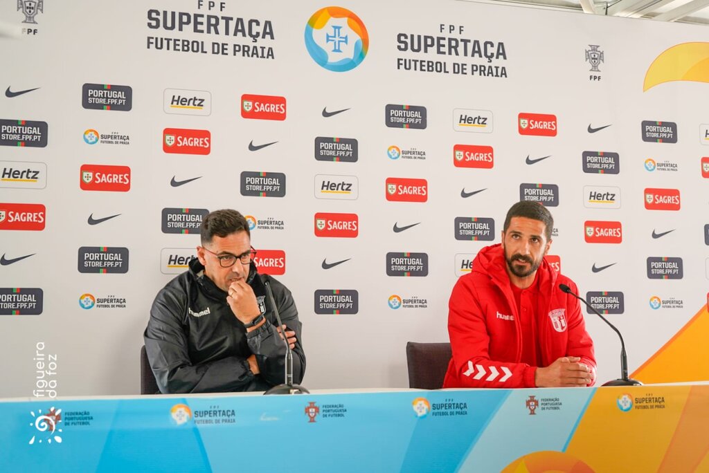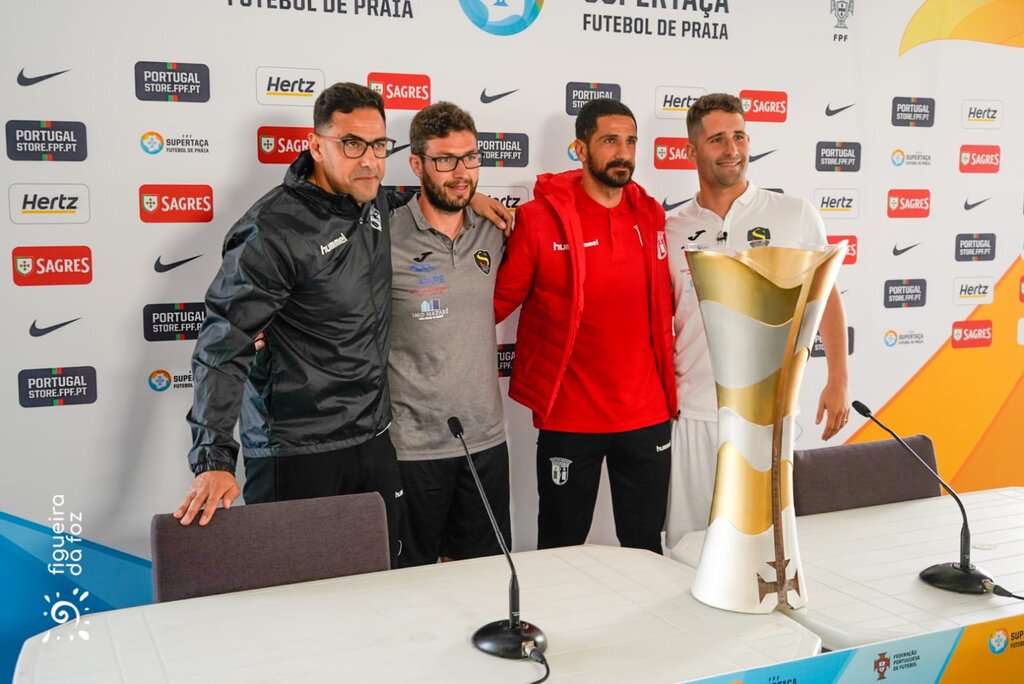 Capitães (Bruno Torres e Duarte Vigo) e Treinadores (António Torres e Edim Milhazes) das equipas que disputam o grande derby- Super Taça Futebol de Praia- Sporting Clube de Braga/ ACD O Sótão, amanhã, no areal da zona desportiva de Buarcos, pelas 13h00, marcaram presença na conferência de Imprensa que teve lugar esta tarde. A vontade de ganhar e o respeito pelo adversário foram transversais nas intervenções dos presentes, não deixando nenhum dos treinadores antever a tática a ser usada em campo.