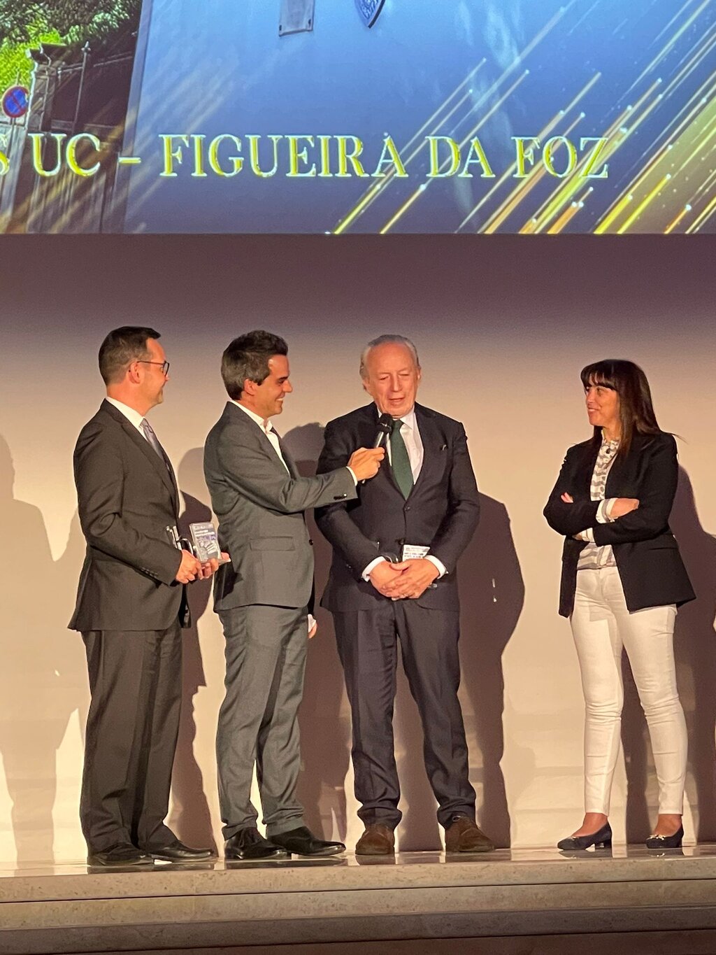Pedro Santana Lopes subiu ao palco por duas vezes. A primeira acompanhado de Anabela Tabaçó e do Vice-Reitor da Universidade de Coimbra (UC), Nuno Mendonça, para receber o Prémio Ensino – pela criação e instalação do Campus da Universidade de Coimbra na Quinta das Olaias, “visto como uma oportunidade única para reforçar relações institucionais e criar redes colaborativas que contribuam para o desenvolvimento sustentável da região”.