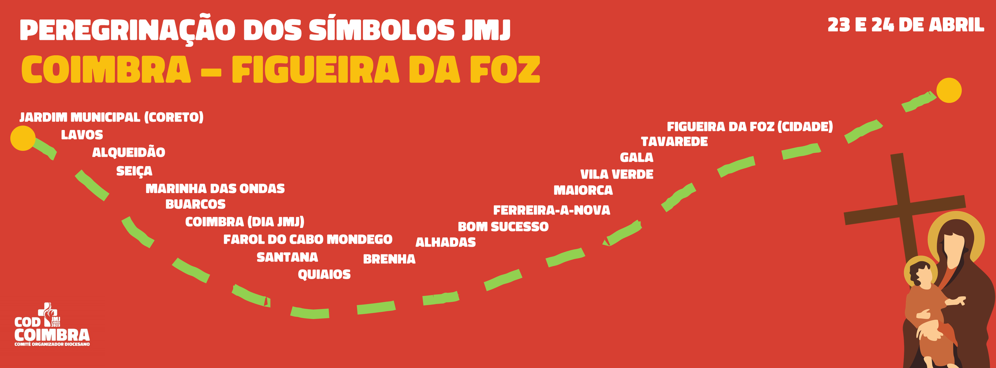 A Figueira da Foz vai receber, dia 23 de abril, pelas 10h30, no Largo do Tribunal, a Cruz Peregrina e o ícone de Nossa Senhora Salus Populi Romani - símbolos das Jornadas Mundiais da Juventude 2023, que irão percorrer todas as paróquias do concelho.