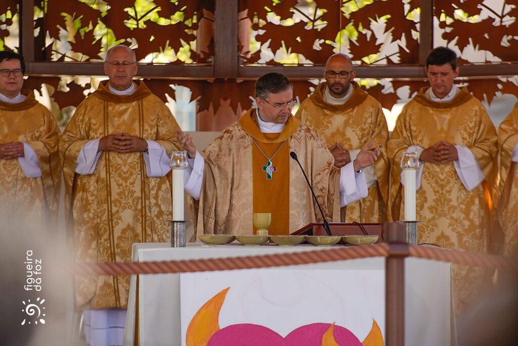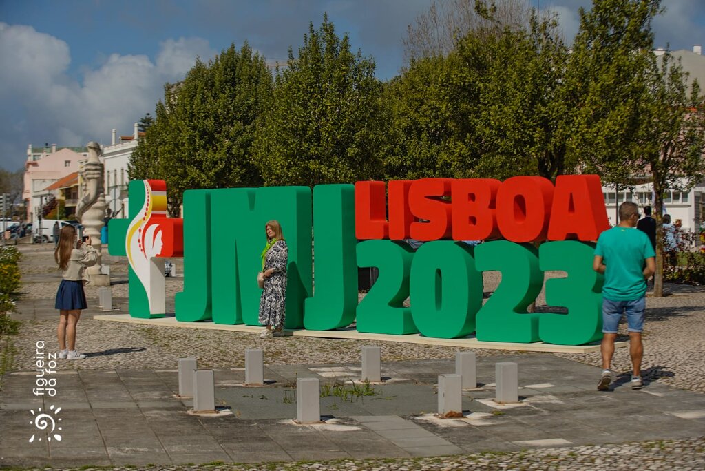 Para assinalar a chegada dos símbolos, o início da peregrinação e a celebração nacional “Faltam 100 dias para a JMJ”, realizou-se uma eucaristia no Coreto do Jardim Municipal, pelas 11h00, presidida pelo bispo de Coimbra, Dom Virgílio Antunes e pelo bispo auxiliar de Lisboa e presidente da Fundação JMJ 2023, Dom Américo Aguiar- transmitida em direto pela TVI, à qual assistiu José Duarte - presidente da Assembleia Municipal, Pedro Santana Lopes - presidente da Câmara Municipal da Figueira da Foz, os vereadores do executivo, presidentes de Junta, várias entidades oficiais, representantes das paróquias, das coletividades locais- com os seus estandartes, e uma vasta plateia de fiéis.