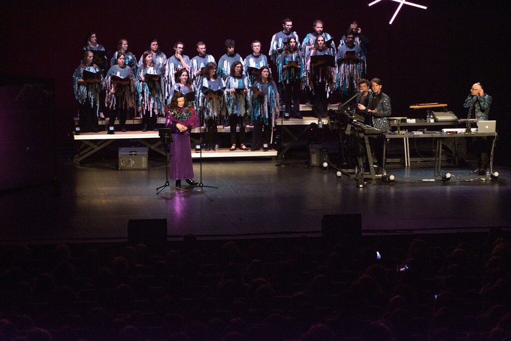 Noite de sábado, 22 de abril, com o Grande Auditório do CAE esgotado para ouvir os The Gift, na apresentação do novo álbum “Coral”. Um registo com um conceito diferente do universo habitual da banda de Alcobaça, num espetáculo esteticamente surpreendente. Um casamento perfeito entre as vozes de um coro e a sempre inconfundível voz de Sónia Tavares, em complemento com uma música pautada por uma eletrónica elaborada a cargo dos restantes elementos da banda, Nuno Gonçalves, John Gonçalves e Miguel Ribeiro. Um concerto certamente inesquecível.