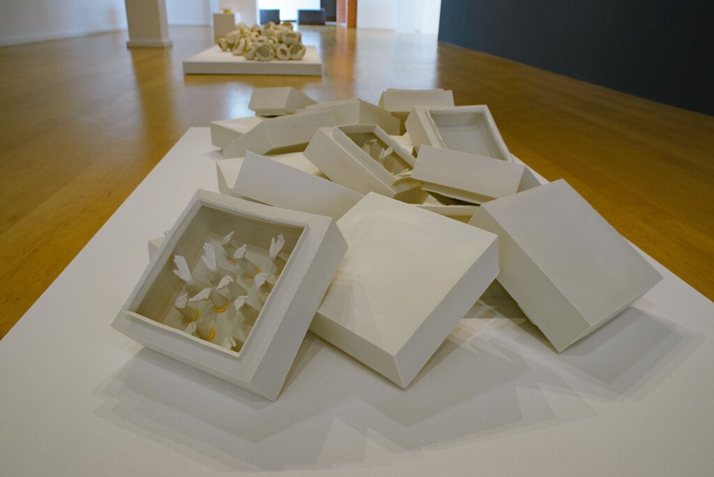 Realizou-se no sábado, 20 de maio, na Sala 2 do CAE, a exposição MARIA PEDRO OLAIO – CERÂMICA. Esta mostra reúne um conjunto de obras representativas da artista, natural de Coimbra, no seu percurso enquanto ceramista. Uma exposição de cariz retrospetivo, em que a artista utiliza a porcelana como retórica, numa linguagem que assenta na ideia do amor e nas suas várias formas de se expressar. Uma mostra que estará patente até dia 17 de setembro, com entrada livre.