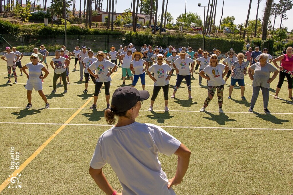 Estiveram presentes cerca de cem dos duzentos e oitenta inscritos no Programa Municipal, tendo realizado uma aula conjunta dirigida pelos Professores Patrícia Barnabé e Nuno Rocha.