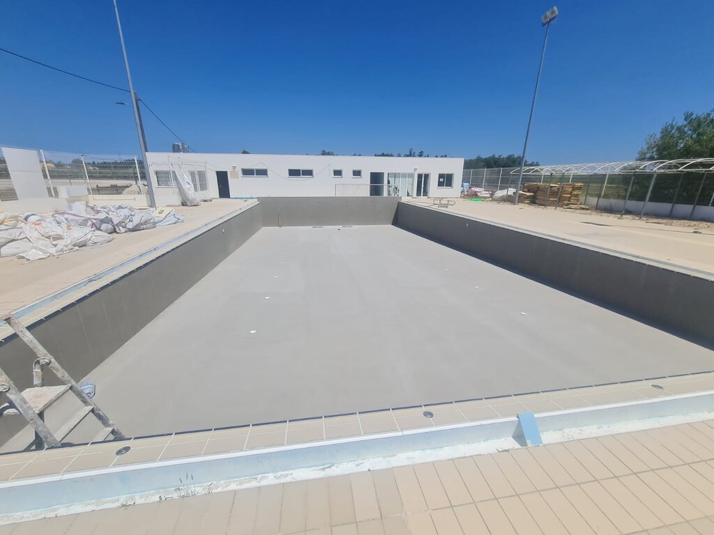 Continuam a decorrer a bom ritmo os trabalhos de remoção e recolocação de revestimento interior e trabalhos complementares na piscina de Maiorca.