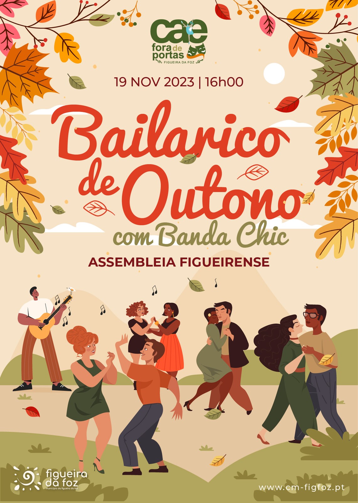 “Bailarico de Outono” é a nova iniciativa do Município da Figueira da Foz, promovida pelo Departamento de Cultura e Turismo no âmbito do projeto «CAE Fora de Portas», promotor de eventos distintos, em diferentes locais, colocando deste modo a cultura, a arte e a animação ao dispor de todos.