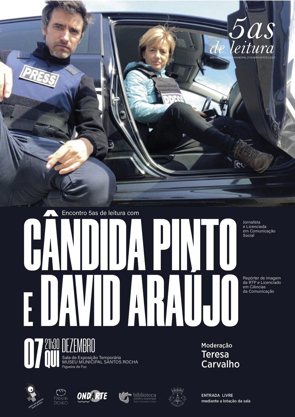 O Município da Figueira da Foz promove no próximo dia 07 de dezembro, pelas 21h30, na sala da exposição «João Reis 1899-1982 | A Intuição da Pintura», no Museu Municipal Santos Rocha, mais uma sessão do projeto de promoção e incentivo à leitura «5as. de Leitura», que terá como convidados a jornalista Cândida Pinto e o repórter de imagem Duarte Araújo, que vêm apresentar o livro «Ucrânia Insubmissa», no qual ambos juntaram as muitas histórias que viveram em reportagem pela Ucrânia em 2022.
