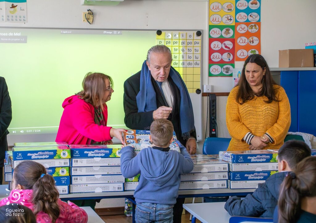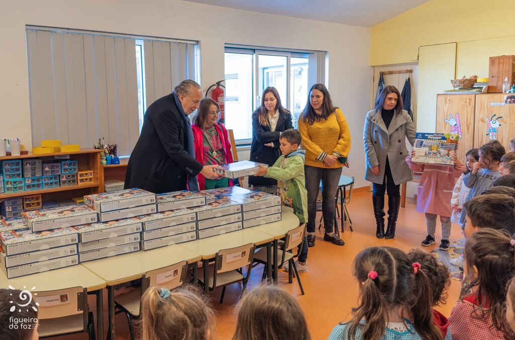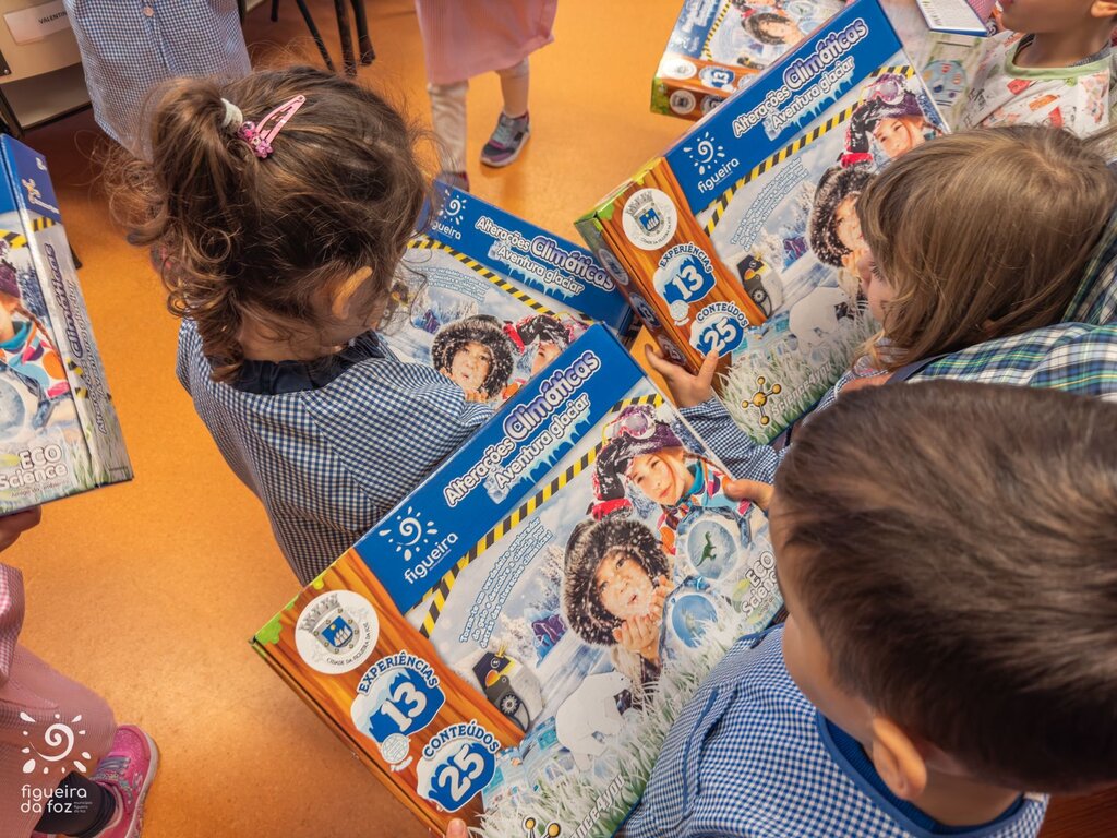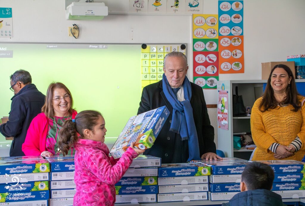 Num gesto simbólico, extensível às 2580 crianças que frequentam os Jardins de Infância e Escolas do 1° ciclo da Rede Pública do concelho, Santana Lopes e Olga Brás, conjuntamente com o Diretor do Agrupamento de Escolas Figueira Norte e a Professora Coordenadora das Escolas do 1º CEB, Maomed Cabrá e Fernanda Lorigo, a presidente da Junta de Freguesia de Ferreira-a-Nova, Susana Monteiro, entregaram a cada uma das 89 crianças que frequentam aquele estabelecimento um jogo educativo e personalizado da Science4you ”Alterações Climáticas – Uma Aventura Glaciar”, que irá proporcionar a construção de aprendizagens e momentos de brincadeira em família e, simultaneamente, despertar o interesse pela temática das alterações climáticas.