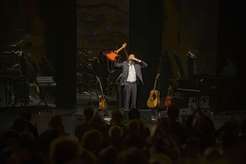 Com o Grande Auditório lotado, o cantor e compositor apresentou-se em palco, sem guião, apenas na companhia dos seus instrumentos e das suas canções. Tem sido assim desde 2019, data da primeira temporada, tendo culminado com sessão dupla no Coliseu do Porto.