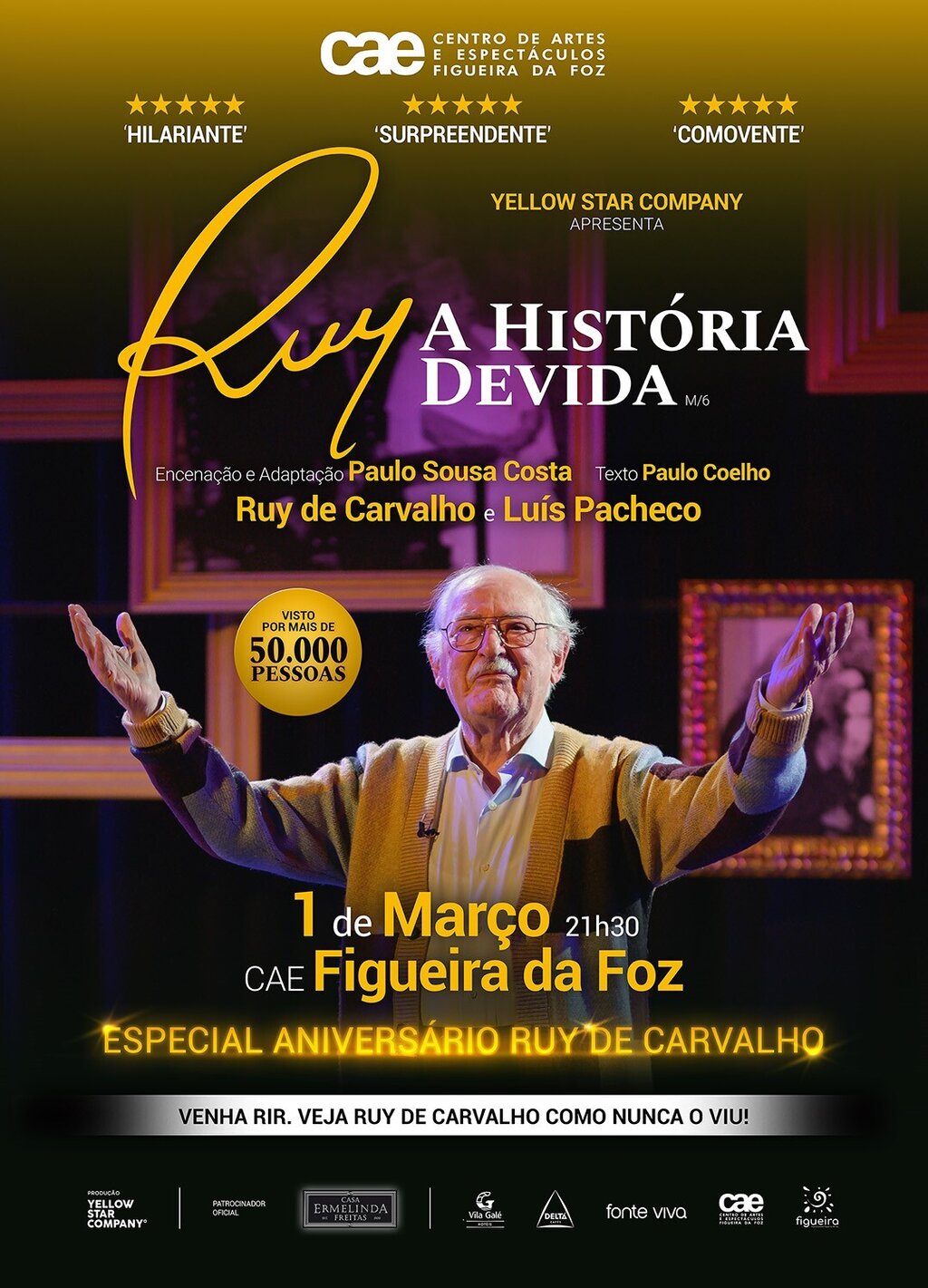 Logo a abrir o mês, dia 01 de março, a figura máxima do Teatro em Portugal- Ruy de Carvalho celebra no nosso palco o seu 97.º aniversário, com «A História DeVida», um espetáculo com encenação e adaptação de Paulo Sousa Costa e texto de Paulo Coelho, Ruy de Carvalho e Luís Pacheco.