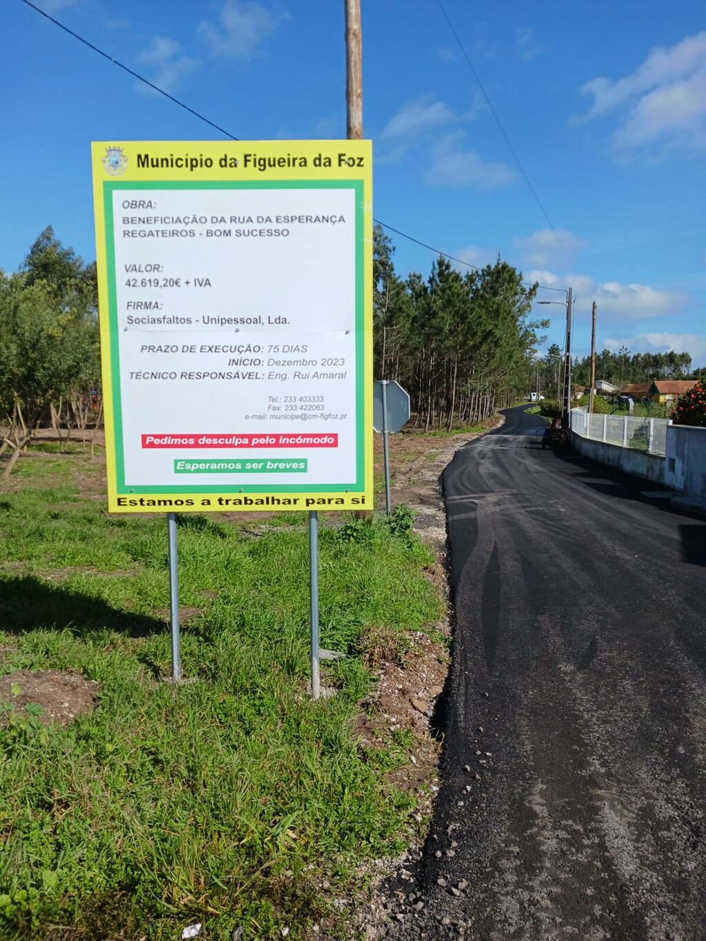 As obras de beneficiação e pavimentação encontram-se a cargo da empresa Sociasfaltos, Asfaltagem de Vias de Comunicação, Unipessoal, Lda, pelo valor de 42.619,20 € acrescido de IVA