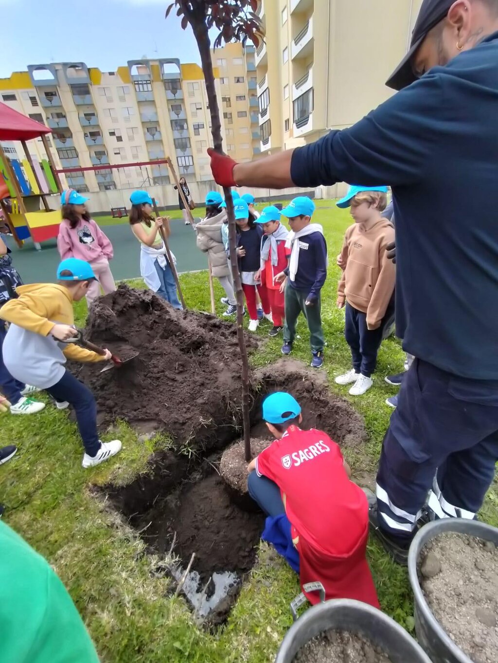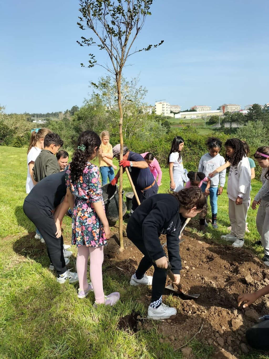 A primeira ação decorreu cerca das 11h00, na Urbanização do Patracol, no Alto do Forno (junto ao Parque Infantil), e contou com a participação de 48 alunos da EB1 do Viso, que plantaram 5 árvores, bem como com a visita surpresa do presidente da Câmara Municipal, Pedro Santana Lopes e dos vereadores executivos. À tarde, 40 crianças da EB1 de Tavarede foram até à Urbanização Vale Pereiro, em Tavarede (junto à Igreja), participar numa segunda ação de plantação, também de 5 árvores.