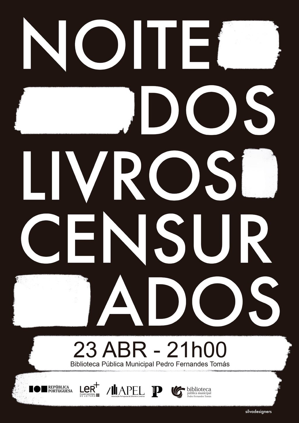 No próximo dia 23 de abril, pelas 21h00, a Biblioteca Pública Municipal Pedro Fernandes Tomás dinamiza (BPMPFT), uma tertúlia de leitura sem censura, mas com livros censurados, no âmbito das comemorações do Dia Mundial do Livro e do Diretos de Autor e em articulação com o PNL - Plano Nacional de Leitura e da campanha "A Noite dos Livros Censurados", a decorrer de 22 a 28 de abril de 2024.