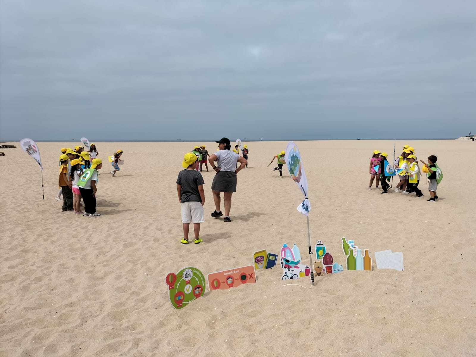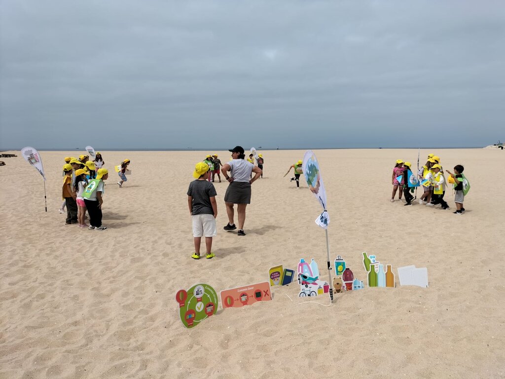 Com recurso a jogo pró-ativo, testou-se a rapidez e sabedoria na deposição correta de resíduos valorizáveis, numa simulação dos ciclos de reciclagem – onde as diferentes fases do ciclo foram sinalizadas com placas verticais e onde as crianças participantes se assumiram como os diversos intervenientes do ciclo de reciclagem (desde os produtores primários ao consumidor).