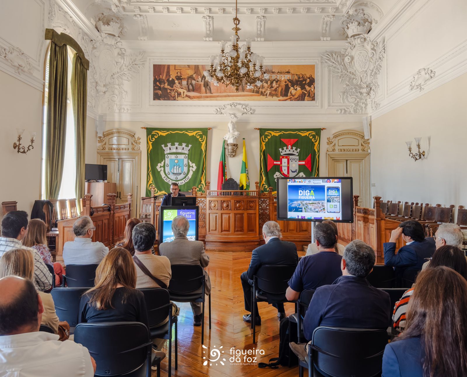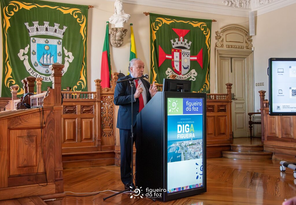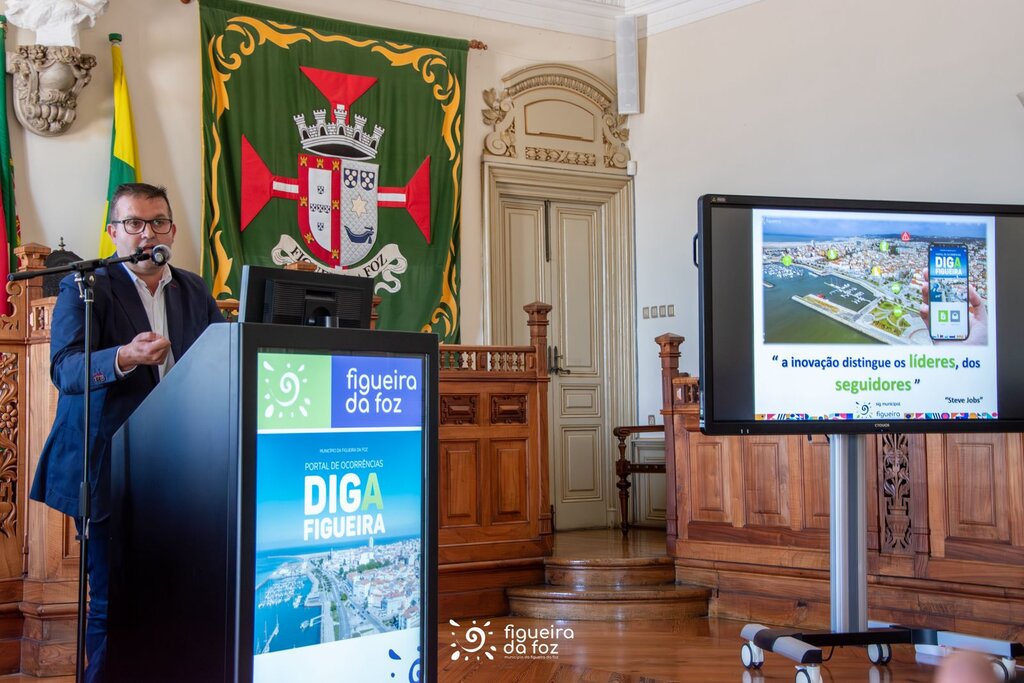 Decorreu ao final da manhã desta quinta-feira, no salão nobre dos Paços do Concelho, a apresentação pública da DIGA Figueira – Portal de Ocorrências, uma das aplicações Sistema de Informação Geográfica (SIG) que integram a componente Smart City do Município da Figueira da Foz e a tornam numa cidade inteligente, baseada em sistemas tecnológicos inovadores que agregam, gerem e disponibilizam dados relevantes, permitindo melhorar os serviços disponibilizados aos cidadãos e aos seus visitantes, uma vez que funcionam de uma forma completamente integrada.