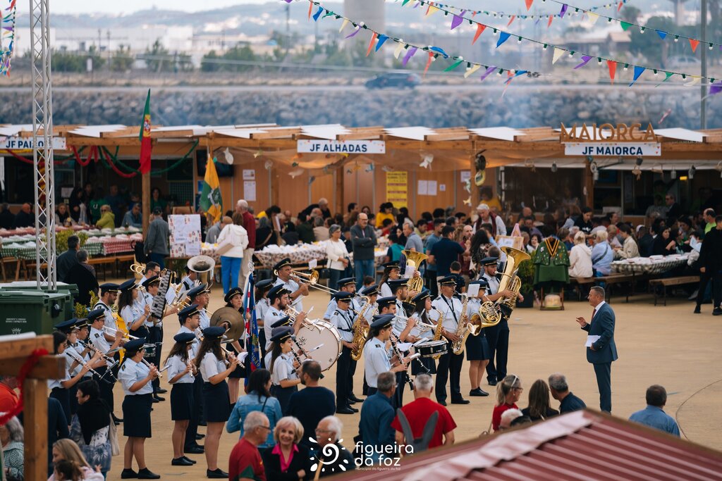 Ainda a refazerem-se das emoções do jogo, os elementos da Banda Filarmónica do Alqueidão perfilaram-se, em pleno recinto, para uma atuação que fez as delícias das muitas pessoas que já se encontravam a jantar nas tasquinhas.