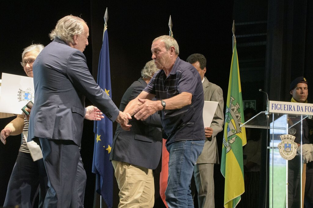 Restaurante “Manuel do Evaristo”, medalha de Mérito Comercial em Prata, representado pelo seu filho Jorge Evaristo; Oriana Cação, medalha de Mérito Desportivo grau Prata, a qual agradeceu a todos quantos a têm acompanhado na sua aventura enquanto dirigente desportiva; Miguel Figueira, medalha de Mérito Social grau Prata, que agradeceu a Pedro Santana Lopes ter aceite o desafio de trazer para a Figueira a exposição “O Mar é a nossa Terra” e de partilhar com a “nossa comunidade” a reflexão que ela encerra e que ajudará a pensar a cidade e a “deixar aos nossos netos a praia que recebemos dos nossos avós”; Fausto Fernando dos Santos Loureiro, medalha de Mérito Social grau Prata Dourada, com mais de quatro décadas dedicadas à causa pública; Ana Paula Carrito, medalha de Mérito Técnico /Científico grau Prata, duas décadas diretora do Agrupamento de Escolas do Paião e que manifestou a sua gratidão, satisfação e orgulho pela escola que foi construindo com o trabalho e dedicação de muitos e que hoje lhe permite dizer que é “para todos”; José Manuel Borges do Nascimento Costa, medalha de Mérito Técnico/ Científico grau Prata Dourada, que se manifestou sentido e sensibilizado, bem como reforçado a “continuar com força e dedicação” à medicina , assim como “realizado com o tempo que por mim passou”; os autores do projeto “Buarcos - The Unridden Ones” – João Traveira, Luís Pereira, João Serpa, Ivo Cação e João Filipe Belo, medalha de Mérito Cultural grau Cobre. João Traveira, que falou em nome dos restantes quatro distinguidos, agradeceu ao município e à cidade “que nos dá tanto”, deu nota de que o documentário irá ficar aberto ao mundo, no Youtube, e que “a procissão ainda vai no adro”, pois ainda iremos ouvir falar muito deles.