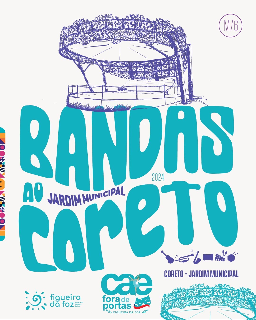 BANDAS AO CORETO 2024 é uma das ações do projeto de animação cultural de verão CAE “Fora de Portas”, dinamizado pelo Município da Figueira da Foz e que conta com a participação das 9 bandas filarmónicas da Figueira da Foz.