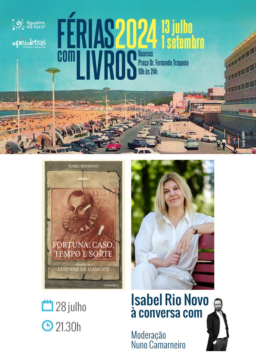 Já domingo, pelas 21h30, Nuno Camarneiro regressa à Feira do Livro para moderar uma conversa com Isabel Rio Novo. A escritora irá falar sobre a sua mais recente obra «Fortuna, Caso, Tempo e Sorte - Biografia de Luís Vaz de Camões”.