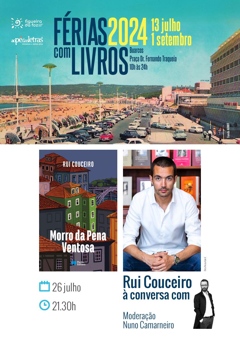 A Feira do Livro «Férias com Livros», promovida pela Ao Pé das Letras, recebe esta sexta-feira, dia 26 de julho, pelas 21h30, Rui Couceiro para uma conversa moderada pelo escritor figueirense Nuno Camarneiro, Prémio LeYa 2012.