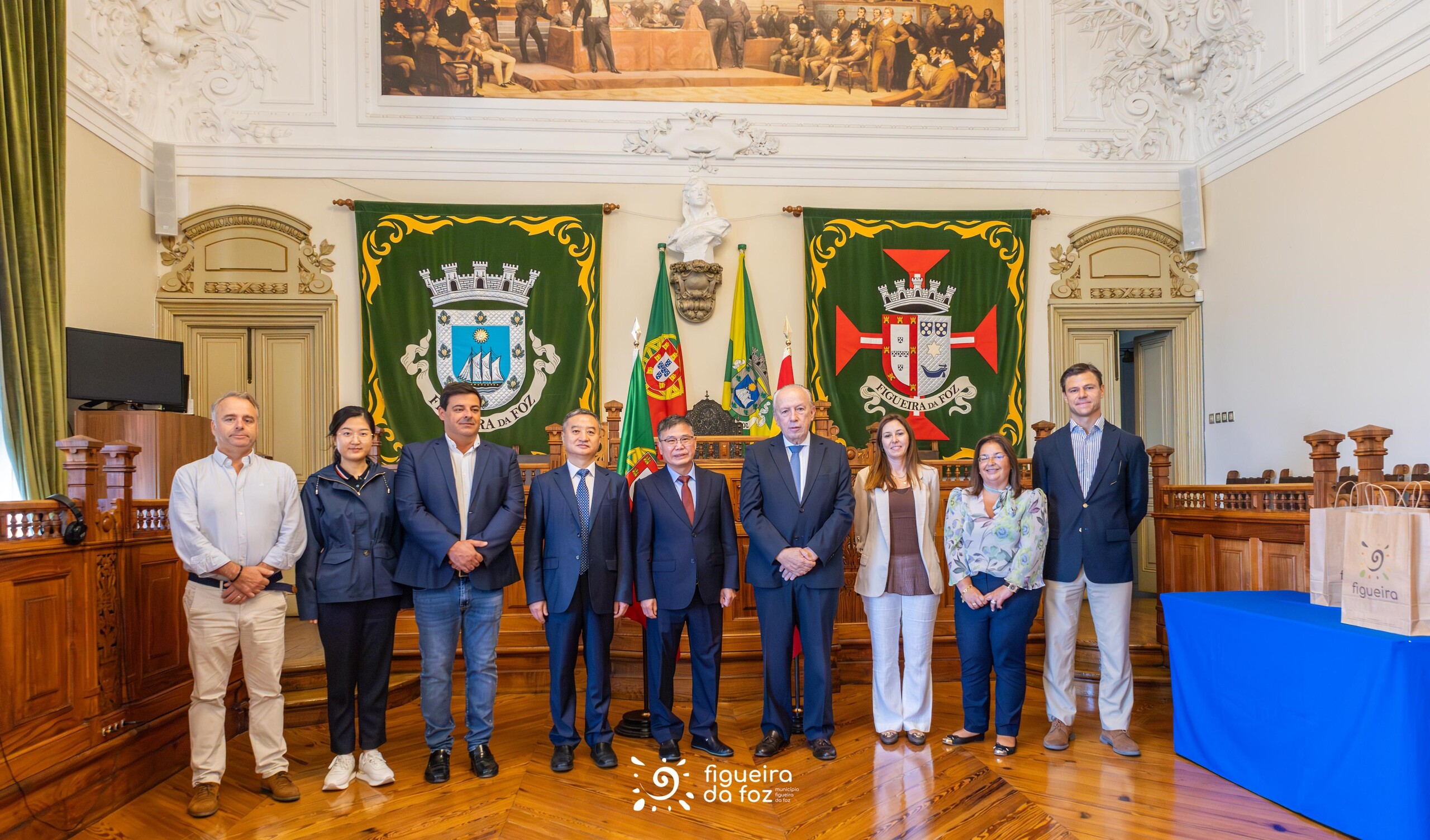 No âmbito da visita a uma unidade industrial localizada no concelho da Figueira da Foz, o Presidente da Câmara Municipal da Figueira da Foz, Pedro Santana Lopes, e os vereadores Manuel Domingues, Olga Brás e Ricardo Silva, receberam esta manhã, no Salão Nobre dos Paços do Concelho, o Embaixador da República Popular da China em Portugal, Zhao Bentang.