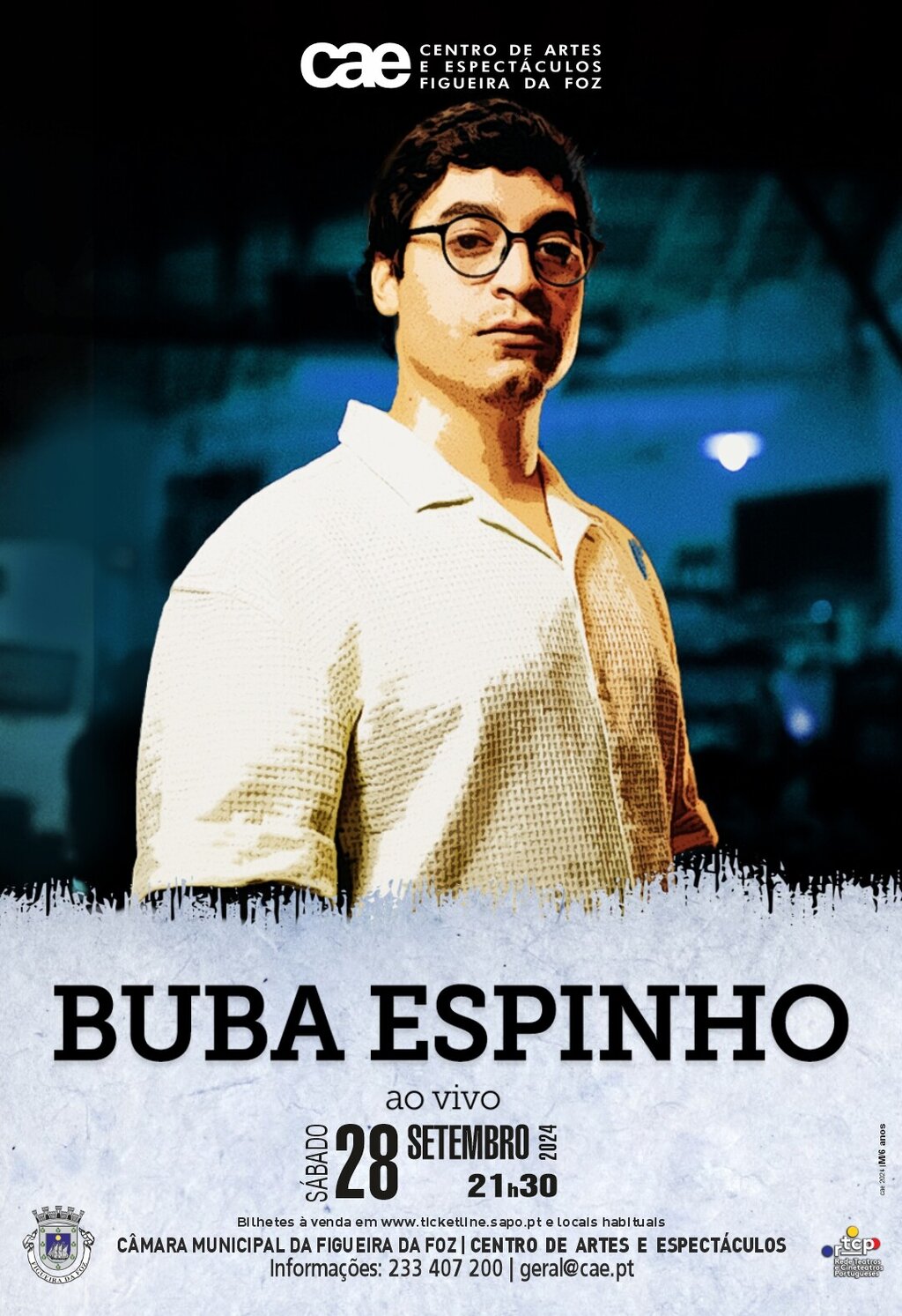 Os bilhetes, que tem um custo de 28,00€ por pessoa, encontram-se à venda na bilheteira do CAE Figueira da Foz e Ticketline através do link: https://ticketline.sapo.pt/evento/buba-espinho-ao-vivo-81949