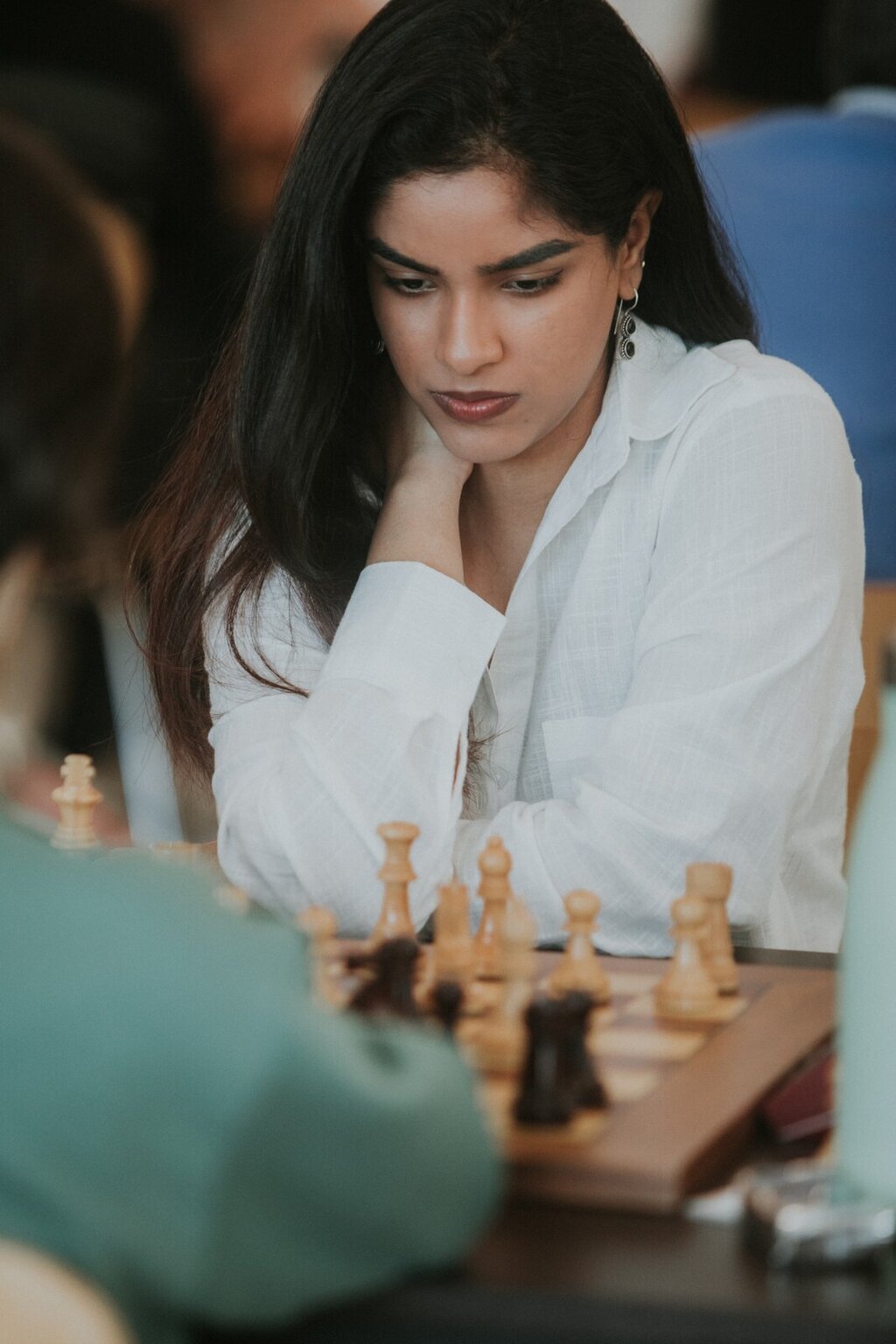 A Grande Mestre Internacional (WGM) indiana, oriunda de Andhra Pradesh, no sudeste da Índia, foi campeã mundial Sub-10, campeã asiática Sub-19, entre vários outros títulos importantes, incluindo o de campeã nacional da Índia em praticamente todos os escalões de formação. Ontem defrontou o jogador indiano mais forte presente no torneio, terceiro no ranking inicial e um dos candidatos à vitória.