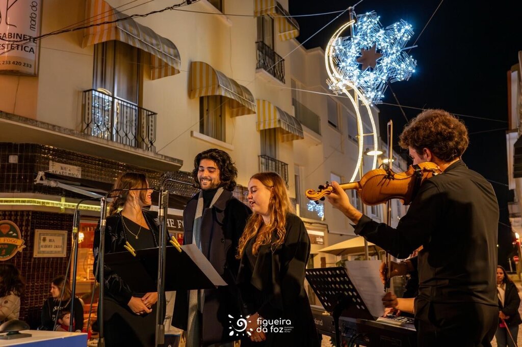 Foi ao som de músicas natalícias, interpretadas por jovens intérpretes (canto e violino) da Associação Pequenas Vozes da Figueira da Foz, acompanhados ao piano pela maestrina Alexandra Curado, que diversos elementos decorativos ganharam luz, brilho e cor.
