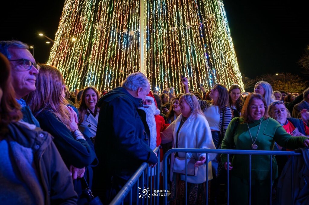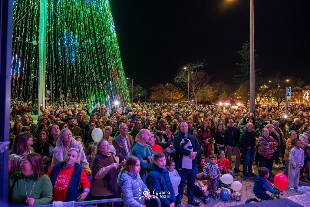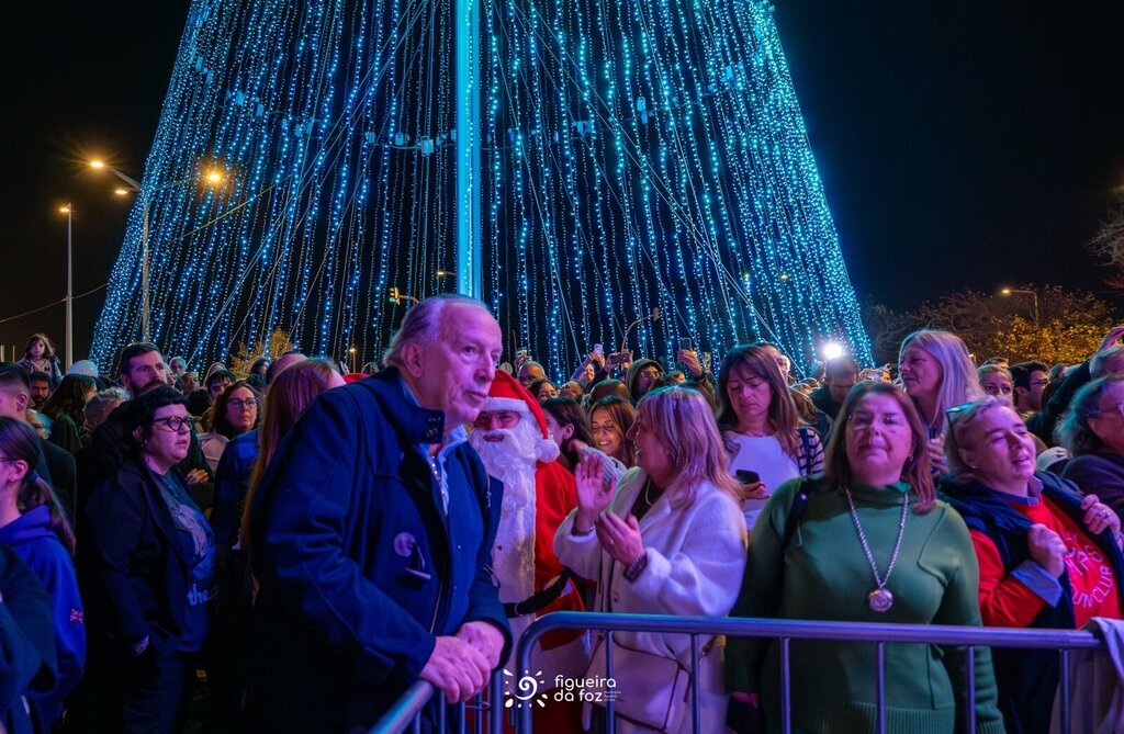 Um mar de gente juntou-se para assistir à inauguração da Árvore de Natal de 35 metros, montada no parque de estacionamento frente à Praça 8 de Maio, na baixa da Cidade.