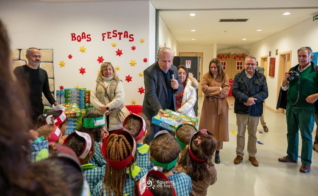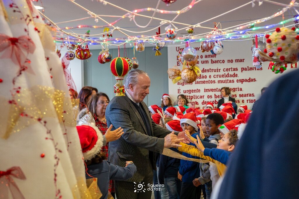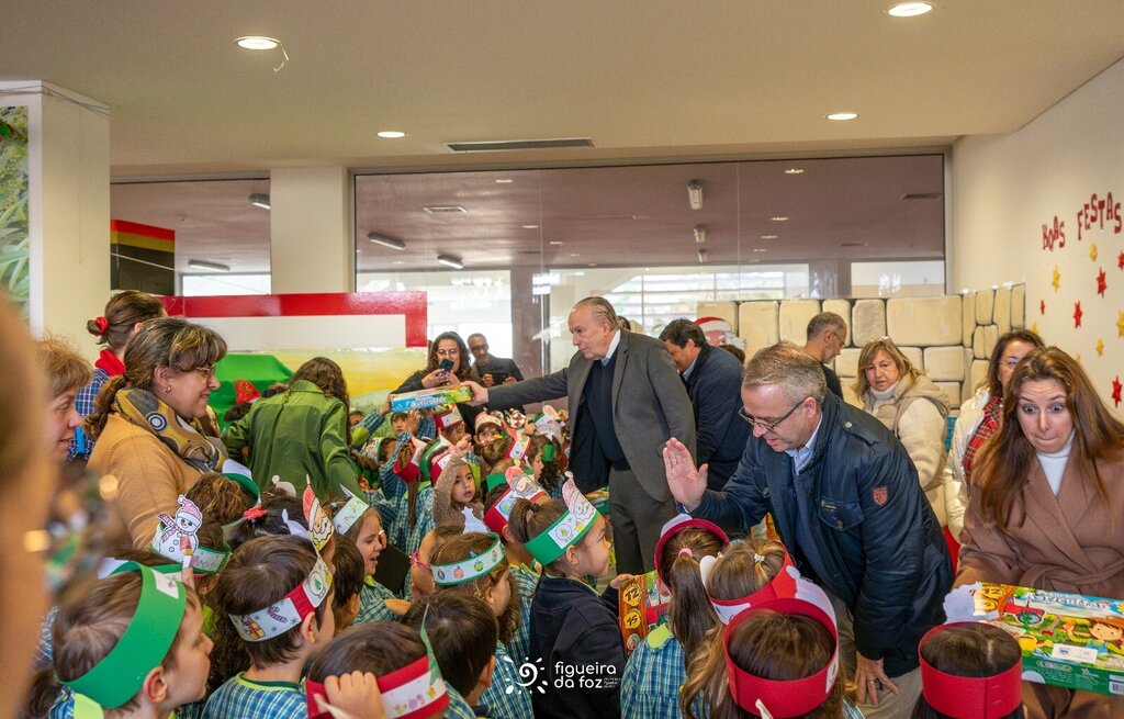 À sua espera estavam cerca de 400 crianças, entre os 3 e os 10 anos, ansiosas para mostrar os seus dotes vocais, mas principalmente para receber o tão desejado presente de Natal que o Município entrega, pelo terceiro ano consecutivo, a todos os meninos e meninas que frequentam os Jardins de Infância e as Escolas do primeiro ciclo do ensino básico no concelho, este ano 2650.