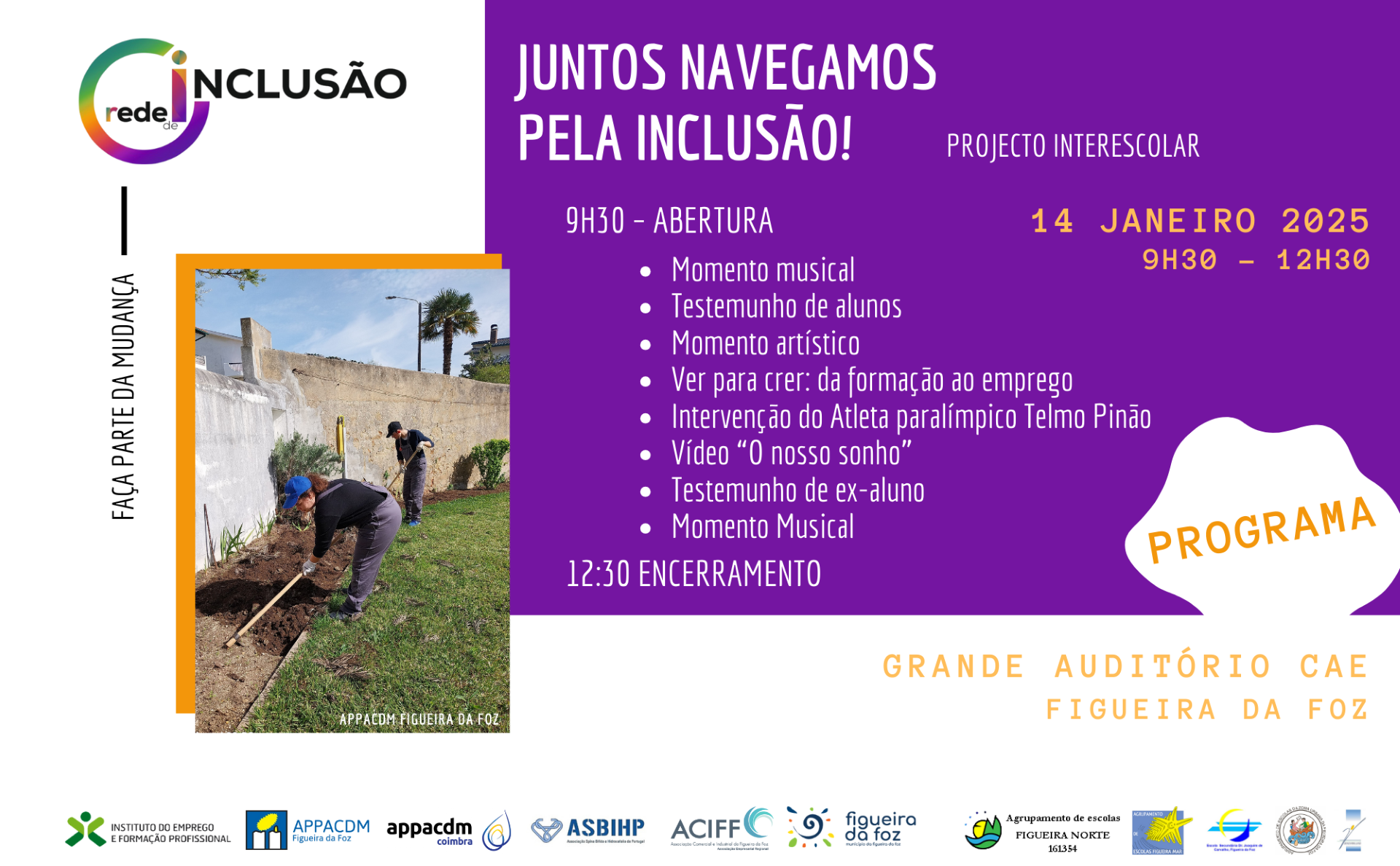 O Grande Auditório do Centro de Artes e Espetáculos (CAE), recebe amanhã, das 9h30 às 12h30, por iniciativa dos Agrupamentos de Escolas e Escolas Não Agrupada Dr. Joaquim de Carvalho, a 3ª edição do Projeto Interescolas, este ano em colaboração com a Rede supramencionada e com o tema “Juntos, navegamos pela Inclusão”.