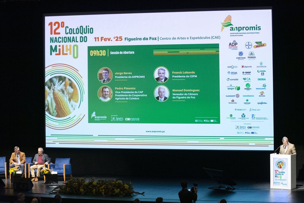 A sessão contou ainda com as intervenções de Jorge Neves (presidente da ANPROMIS); Pedro Pimenta (presidente da Cooperativa Agrícola de Coimbra) e Franck Laborde (presidente da CEPM-Confédération Européenne des Producteurs de Maïs).