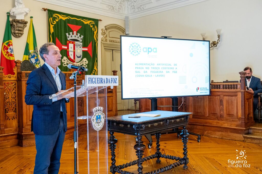 Decorreu há instantes, no Salão Nobre do edifício dos Paços do Concelho da Figueira da Foz, a cerimónia de assinatura do auto de consignação da empreitada de Alimentação Artificial do Troço Costeiro a Sul da Praia da Figueira da Foz (Cova-Gala – Costa de Lavos), que vai permitir a transposição de 3,3 milhões de metros cúbicos de areia para as praias entre a Cova-Gala e a Costa de Lavos.