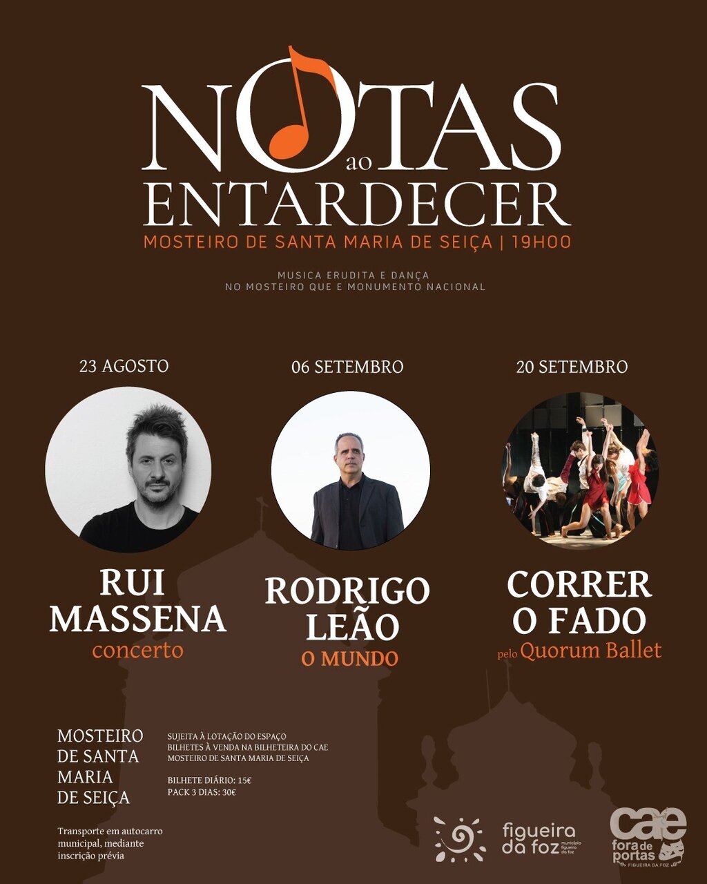 O Bilhete diário terá um custo de 15 euros, o pack 3 dias de 30 euros. O município assegurará transporte em autocarro municipal, mediante inscrição prévia: casa.paco@cm-figfoz.pt