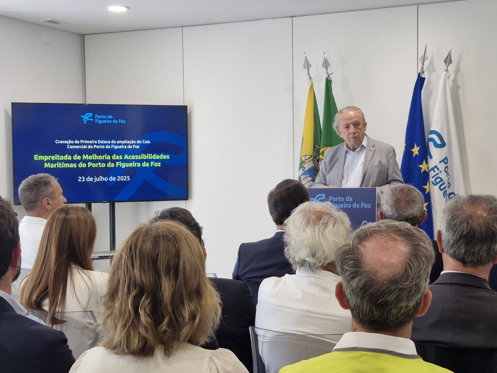 Decorreu na tarde desta quarta-feira, dia 23 de julho, no Cais Comercial do Porto da Figueira da Foz, a cerimónia da cravação da 1.ª estaca da ampliação do Porto da Figueira da Foz, no âmbito da empreitada em curso de «Melhoria das Acessibilidades Marítimas e Infraestruturas do Porto da Figueira da Foz», presidida pelo secretário de estado das Infraestruturas, Hugo Pinto Santos, que na sua intervenção avançou que o Governo irá aprovar esta semana, em Conselho de Ministros, uma nova estratégia para os portos nacionais, a ”Estratégia Portos 5+”, que vai colocar o “centro da logística nacional no sistema portuário. A mesma será centrada em cinco eixos: mais investimento, mais sustentabilidade, mais intermodalidade, mais digitalização e mais integração.