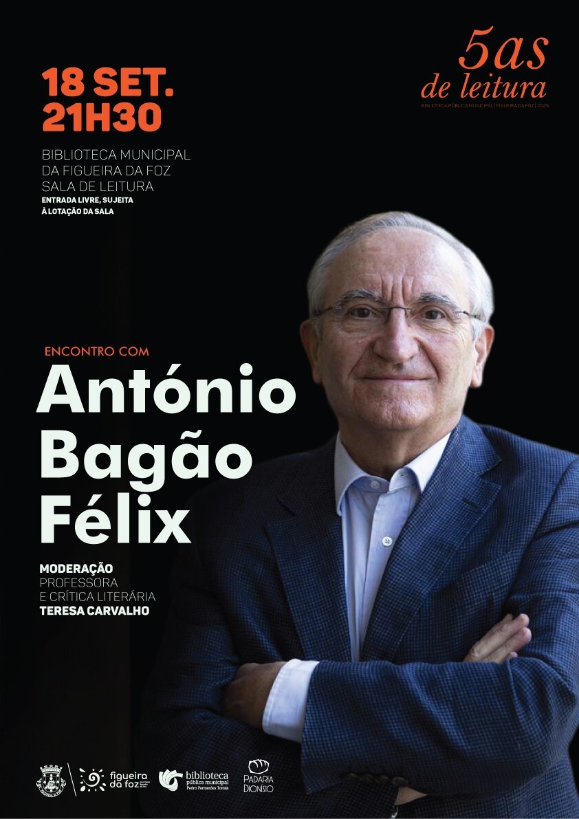 O Município da Figueira da Foz, após a habitual pausa de verão, dá início a mais um ciclo de «5as de Leitura», com um encontro com António Bagão Félix, que terá lugar no dia 15 de setembro, pelas 21h30, na sala de Leitura da Biblioteca Pública Municipal Pedro Fernandes Tomás, com entrada gratuita (sujeita à lotação do espaço).